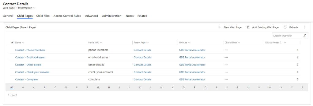 The requirement here is have a series of child Web Pages with Display Order populated. The hierarchy is important to implement this pattern